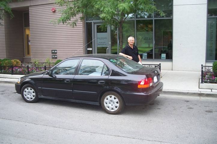 The big excitement of the trip to Wisconsin was on Tuesday when we stopped in La Crosse for a coffee and noticed a loud clattering noise coming from the car’s engine. We opened the hood and saw that the A/C compressor wasn’t turning smoothly, and although turning it off didn’t stop the noise it did change it. So we went hunting for a Honda dealer, who said they couldn’t do anything until the next week, not even look at it. But they did send us to a good mechanic, Pete Conway, who listened with a stethoscope and said yes indeed, the A/C pulley bearing was worn out. There was no part in town, but he said plan B was to cut the belt, which stopped the noise and guarded against it seizing up and doing more damage. So we were without A/C for some hot driving, but at least we were wearing shorts and not needing to look crisp. We got on the Internet and found a shop in Chicago specializing in Hondas (Haas), and made an appointment for Thursday. This is the first mechanical failure on my 1998 Civic, which has been very reliable for 10 years and 120,000 miles.
