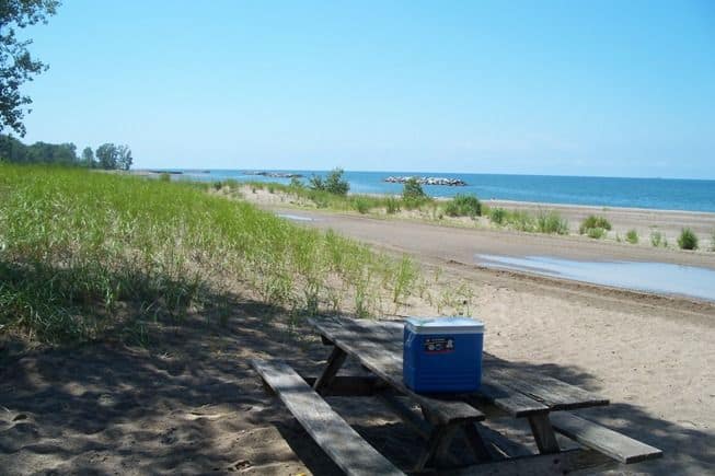 On Tuesday, July 22, I left Cleveland and headed east. I stopped for lunch in Erie, PA, at Presque Isle State Park and got sand in my sandals on the beach: