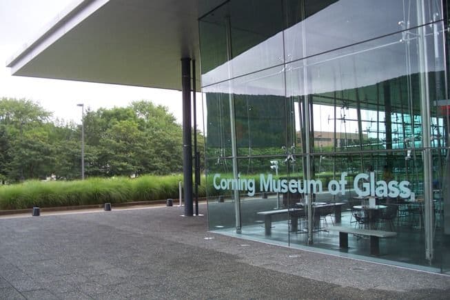 It’s a great display of art glass, demo of glassblowing, and exhibits on the things developed by their researchers, advances in optical glass, fused silica glass, and glass ceramic. The walk up to the museum threatened to be wet with rain, but I didn’t take an umbrella and was lucky to have only some sprinkles, although yesterday and today were real drenching rains in the Northeast with floods in some areas. The walk to the museum was lined with tall grasses, and you could slip to think Museum of Grass.
