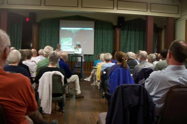 Chautauqua is BIG, not your usual conference facility, a whole village, an upscale gated community of culture. You can buy property there, but kind of like owning a condo at a ski resort the big attraction seems to be rental income. I arrived about 4:00 pm and got a whole packet of information from the welcome center, and a ticket for the evening symphony concert. There’s no tent campsite, but they sent me down the road a few miles to Camp Chautauqua, a private campground shockingly expensive at $27.50 for a tent site with no electricity or water, and washrooms not just down the hall but down the road. I checked out my site, then headed back to Chautauqua Institution, parked for another $6, and scanned in at the gate (everyone needs some kind of ticket or pass to get inside) to look around. It is a beautiful site, lots of facilities and services. I think I got a sense of the place in a few hours, but I’m not sure what it would be like to spend a week there. I hope to find out in 2009 with the IRAS conference.