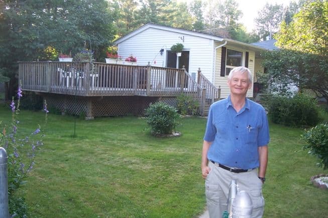 Tonight I’m in Geraldton, Ontario, 5 days after I last updated my blog before I got into Canada. My first 4 days in Ontario were filled with people, first near Barrie about 60 miles north of Toronto where I visited a friend we’d met in Calgary who moved back to Ontario to be near her family and bought a 40 year old cottage within a kilometer of the beach on Lake Simcoe. She took a photo of me in front of her house: