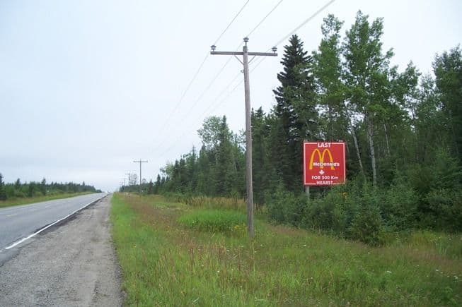 Today, Thursday, Aug. 7, I drove on west, past a sign that said 500 km to the next MacDonald’s: