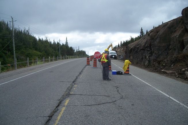 I’m writing this blog update on Sunday evening, Aug. 10, in a motel room in Sault Ste. Marie, Ontario, after 3 nights of camping. I left Geraldton on Friday, aiming to continue west on highway 11, the northern trans-Canada, to Nipigon where it meets up with highway 17, the southern route, and turn back east along the north shore of Lake Superior. After camping at the Ontario park near Geraldton I realized that the provincial parks were quite nice, so I headed for Rainbow Falls park. Along the way I encountered the bane of Canadian vacationers in the summer, road construction: