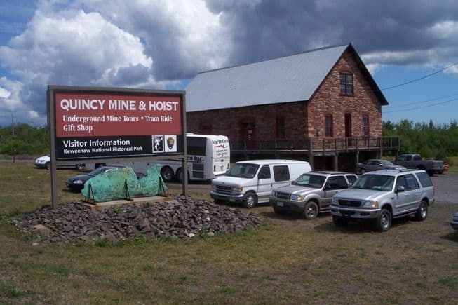 Copper was a huge industry here in the late 19th and early 20th centuries, but all the mines are now closed and there’s now a National Historical Park (http://www.nps.gov/kewe/). The special feature of the Quincy tour is its hoist: