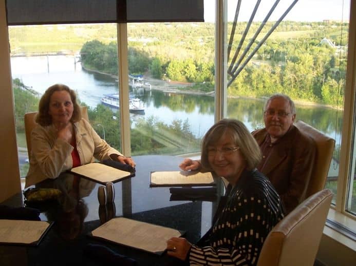 We stayed two nights in Edmonton, and on Sunday evening had dinner with our two friends there, in a restaurant with a great view overlooking the North Saskatchewan river valley: