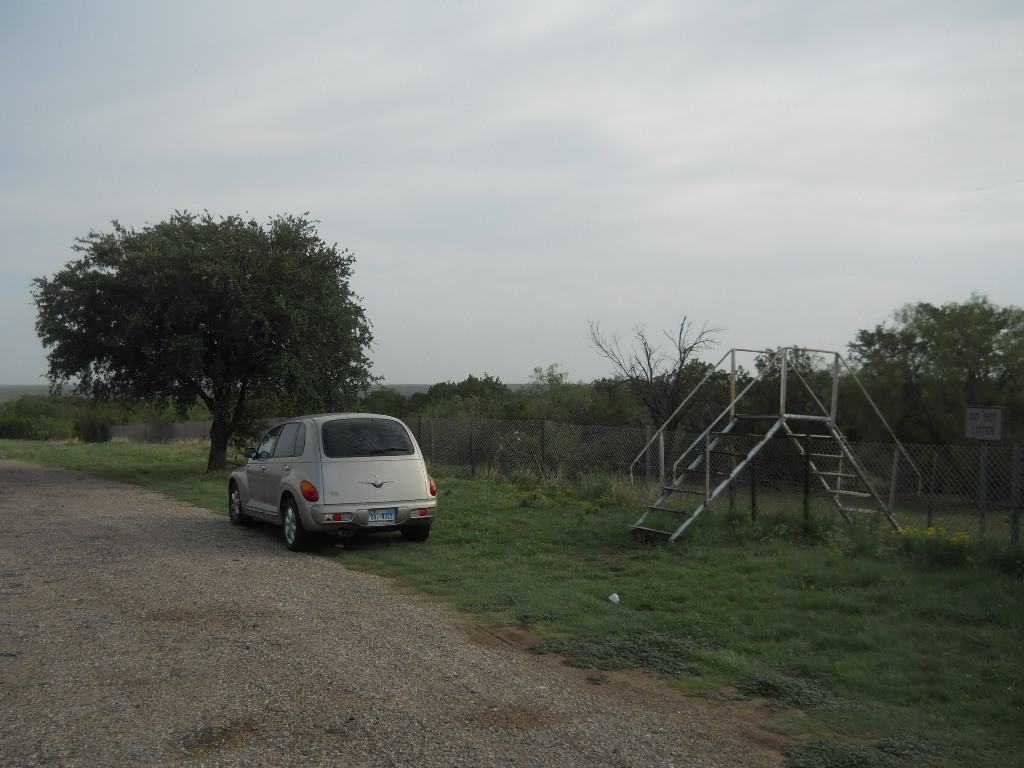 Picnic site near Brenham, TX, with a stile to cross the fence into