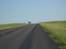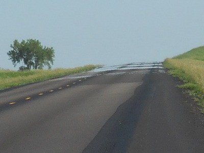 Highway and prairie sky in North Dakota, with shimmering mirage in