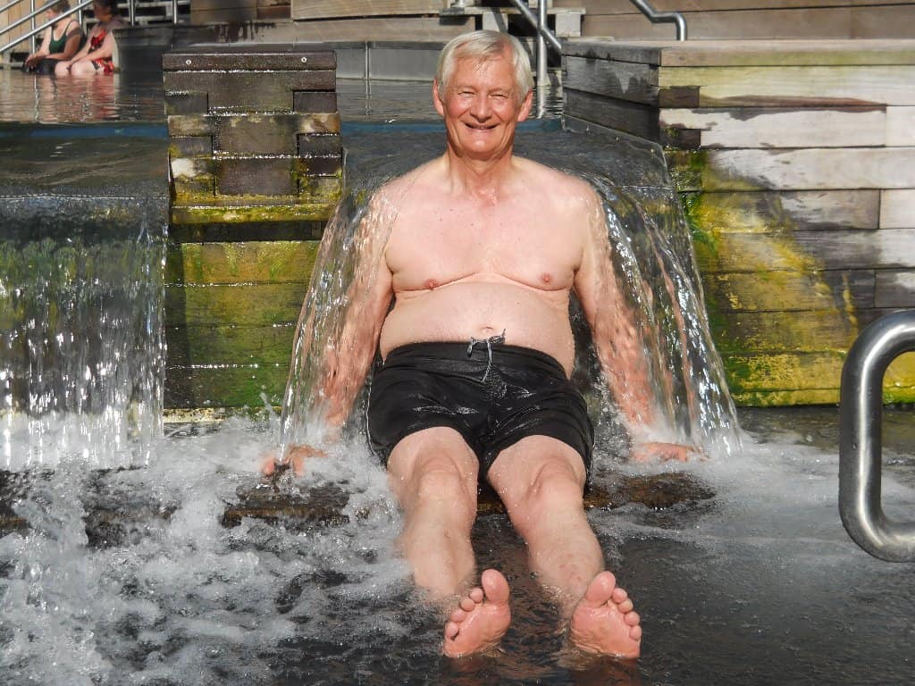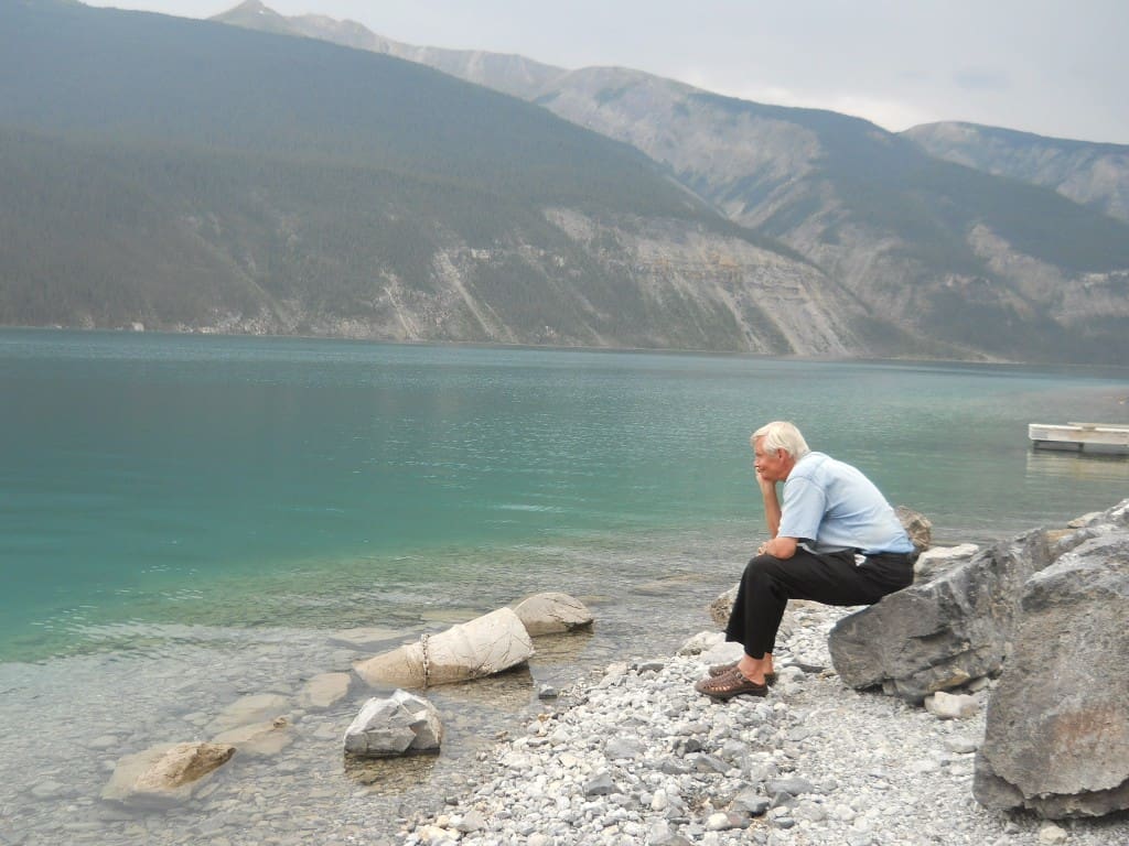 Muncho Lake, BC, recreating the "Thinker" pose I