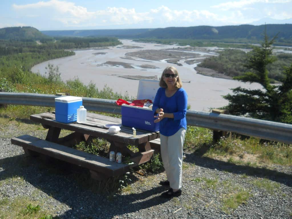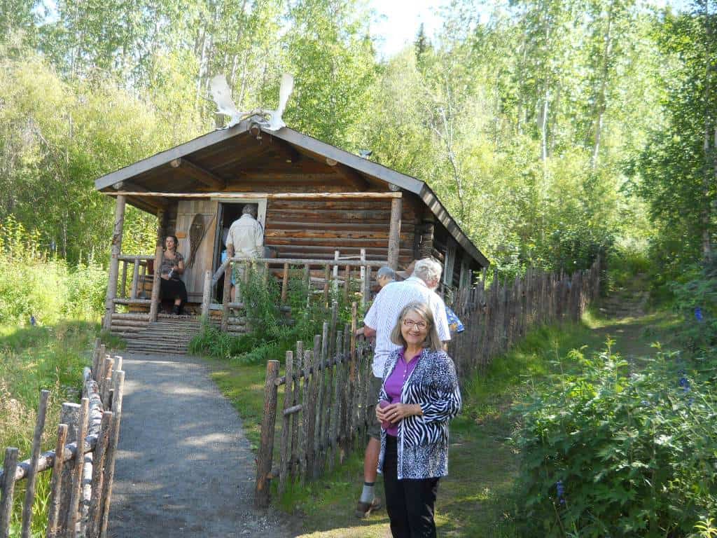 Fairbanks was the mostly northerly point on our journey, almost 65 degrees latitude. Our highlight was the University of Alaska, which has the state's major museum where we spent most of a day, and returned in the evening [photo] for Shakespeare in the park -- they stuck to the script so Romeo and Juliet both wound up dead. We learned the economic appeal of "dry" housing, which has nothing to do with alcohol but where students get cheaper rent without running water or toilets, since plumbing is expensive on permafrost.