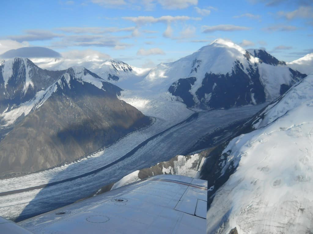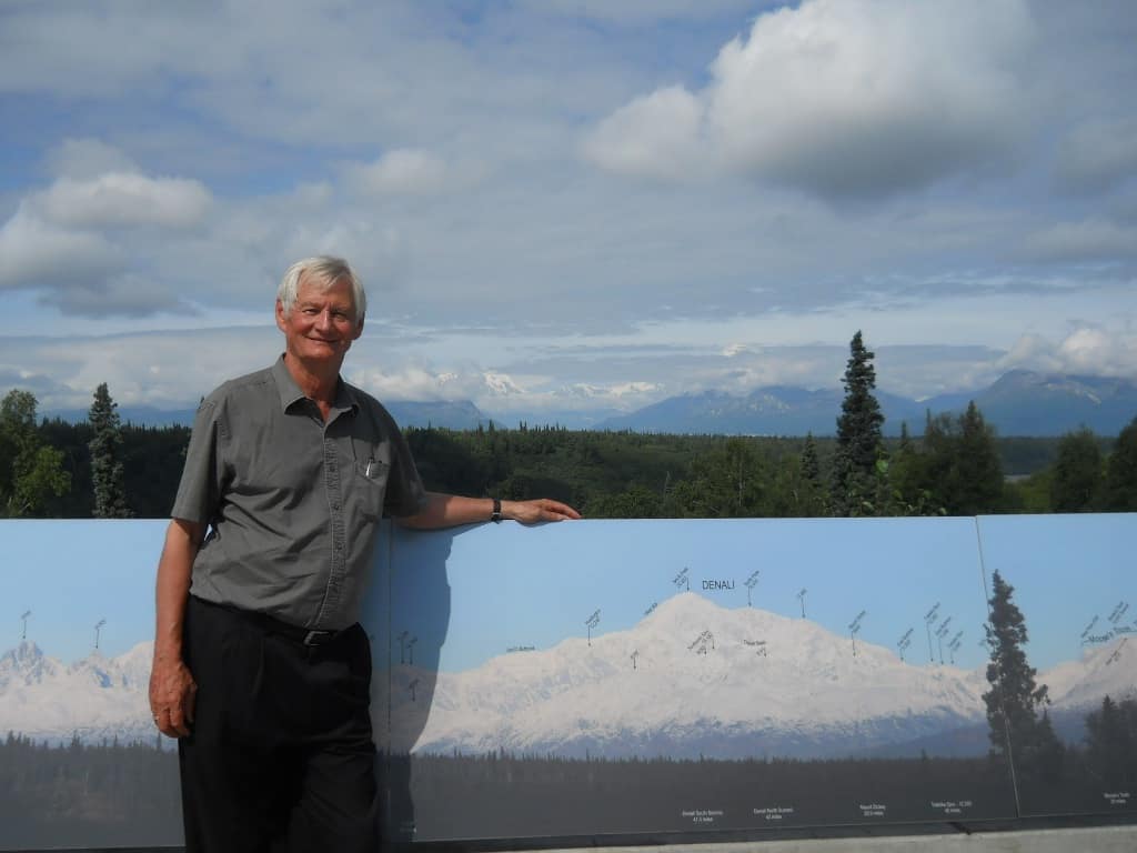 Denali National Park is a big draw for tourists, a couple hours drive south of Fairbanks. The highest mountain in North America is the centerpiece, officially named Mt. McKinley but controversy over the political process for assigning the name continues and the state of Alaska and most Alaskans and tourists call it Denali, its long-standing local name derived from aboriginal language. The weather cooperated so we were able to see the peak from the highway [photo], and also took a one-hour sightseeing flight around it [photo], spectacular with glaciers and steep rock faces. We didn't climb Denali, but did hike up Mt. Healy [photo] near the park entrance, 3 miles each way and 500 meters elevation change and a great overlook.